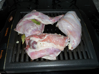 Colocar os pedaços golpeados a grelhar e sempre que virar o coelho pincelar com a marinada. Depois de bem grelhado é só servir.
